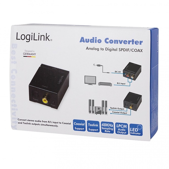 Adaptor convertor analogic-digital Intrare 2xRCA mama – Toslink/ Coaxial Didital audio LOGILINK CA0102.