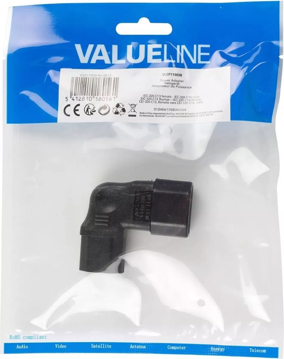 Adaptor alimentare IEC-320-C14 la IEC-320-C13 la 90 grade spre dreapta Valueline VLEP11904B