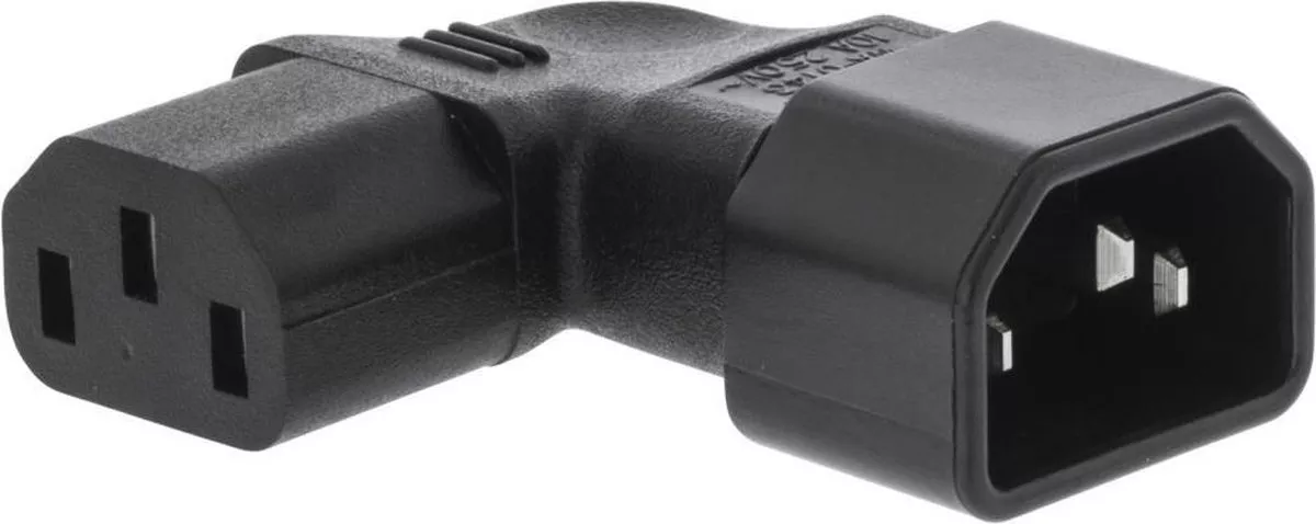 Adaptor de putere pentru alimentare cu unghi drept de la IEC-320-C14 la IEC-320-C13 la unghi stâng. Acest adaptor vă permite să conectați un cablu de alimentare la dispozitive care au mai puțin spațiu pe spate pentru conexiuni.