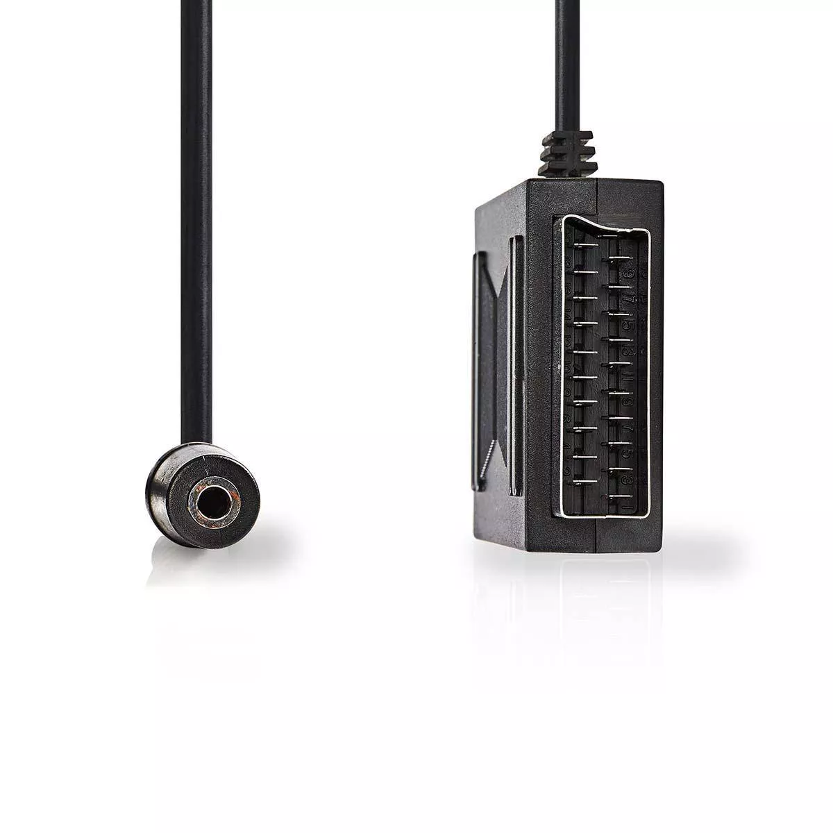 Cablu adaptor SCART tata – SCART mama +Jack 3.5mm mama 0.2m negru Nedis.