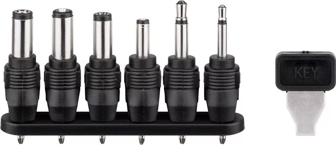 Contine 6 conectori detasabili: 3.5×1.35 mm, 5×2.1 mm, 5.5×1.5 mm, 5.5×2.5 mm, JACK 2.5 mm, JACK 3.5 mm,