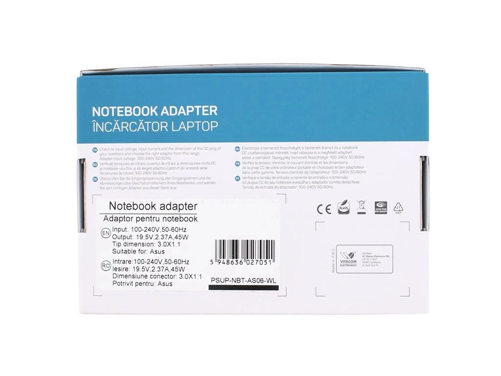Alimentator pentru laptop Asus 19V 2.37A 45W mufa 3.0X1.1mm Well.