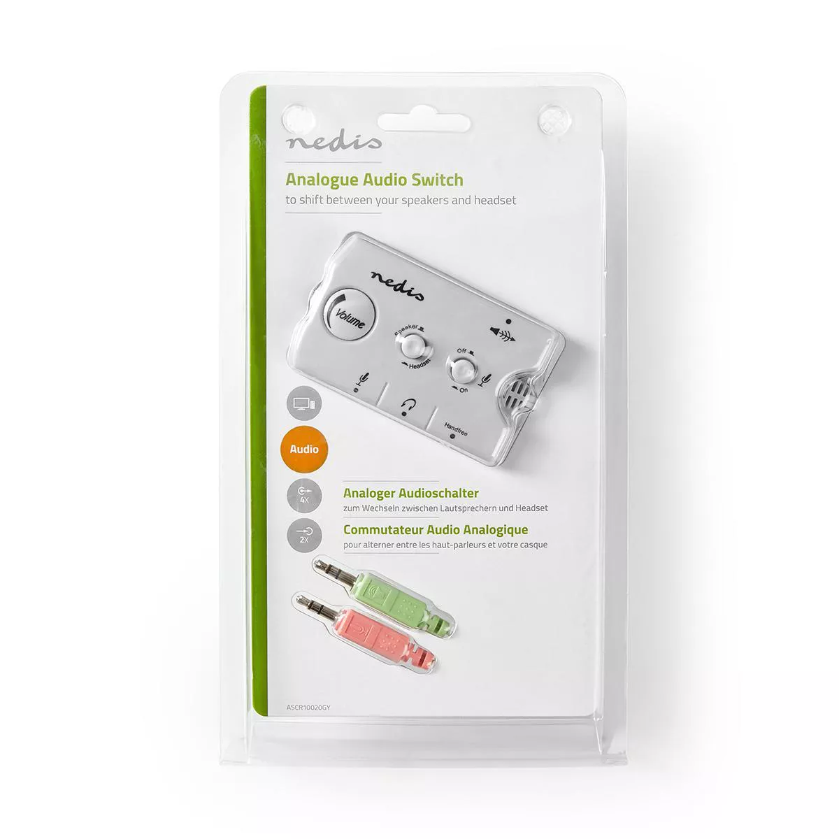 Audio Switch comutator audio analogic Nedis Jack 2x 3.5 mm tata – 3x 3.5 mm mama + 2.5 mm mama gri.