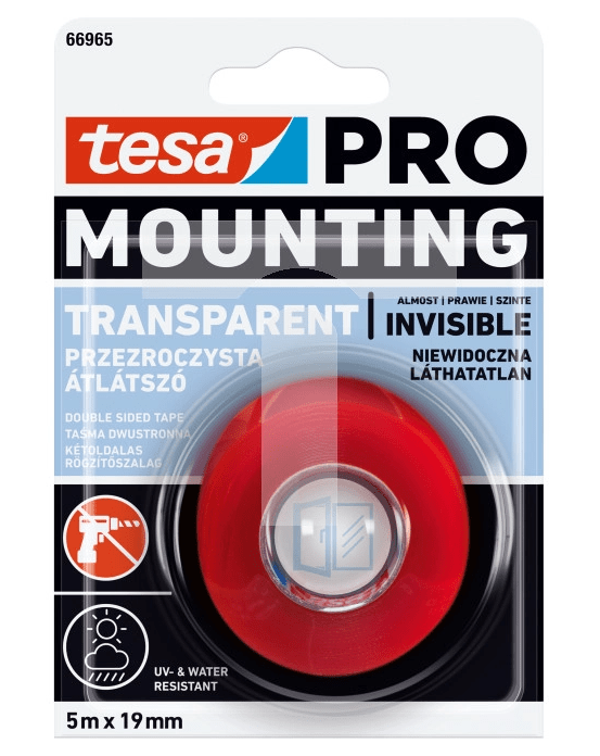 Banda dubluadeziva montare transparenta 19mm 5m Tesa PRO T-66965-07.