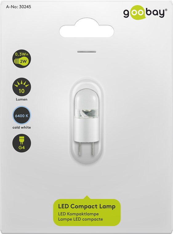 Bec LED G4 12V 0.3W alb rece 6400K 10lm 23.5×11.2 mm Goobay 30245.