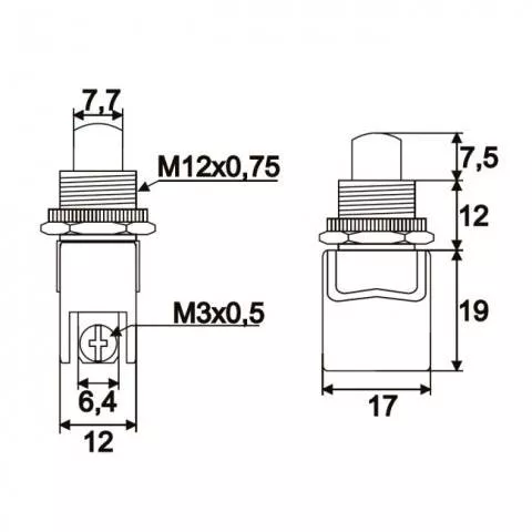 Buton 1 circuit 4A-250V ON-(OFF) culoare negru.