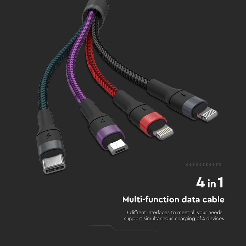 Cablu 4in1 USB TYPE C MICRO USB LIGHTNING – USB 2.4A 1.2m V-TAC SKU-7748