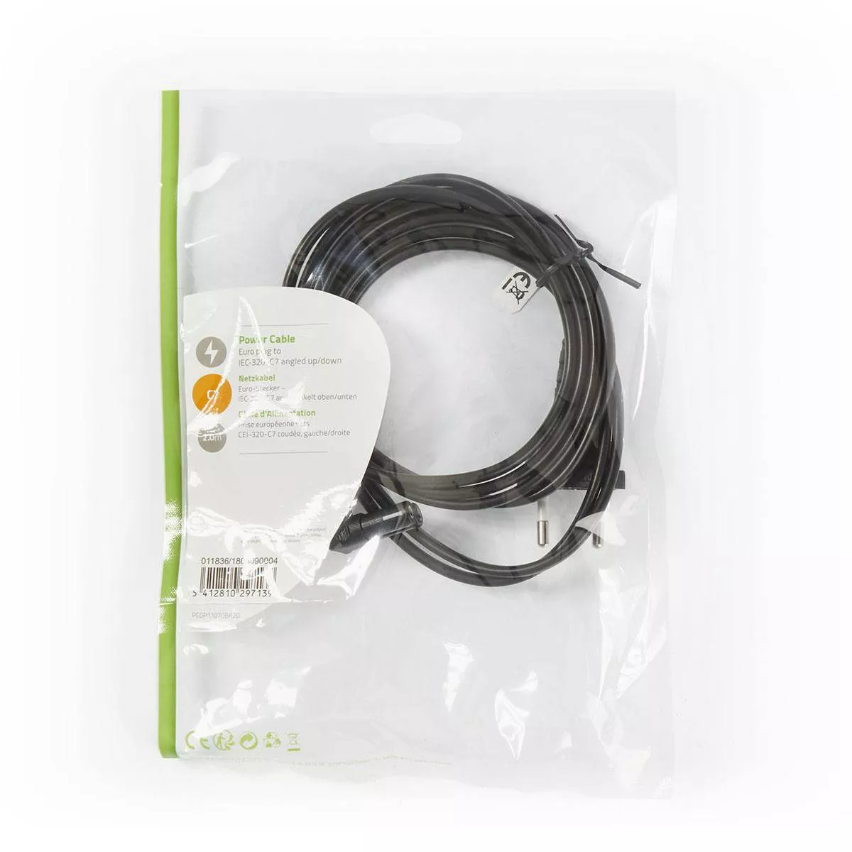 Cablu de alimentare | Euro Plug – IEC-320-C7 înclinat în sus / jos | 2,0 m | Negru.