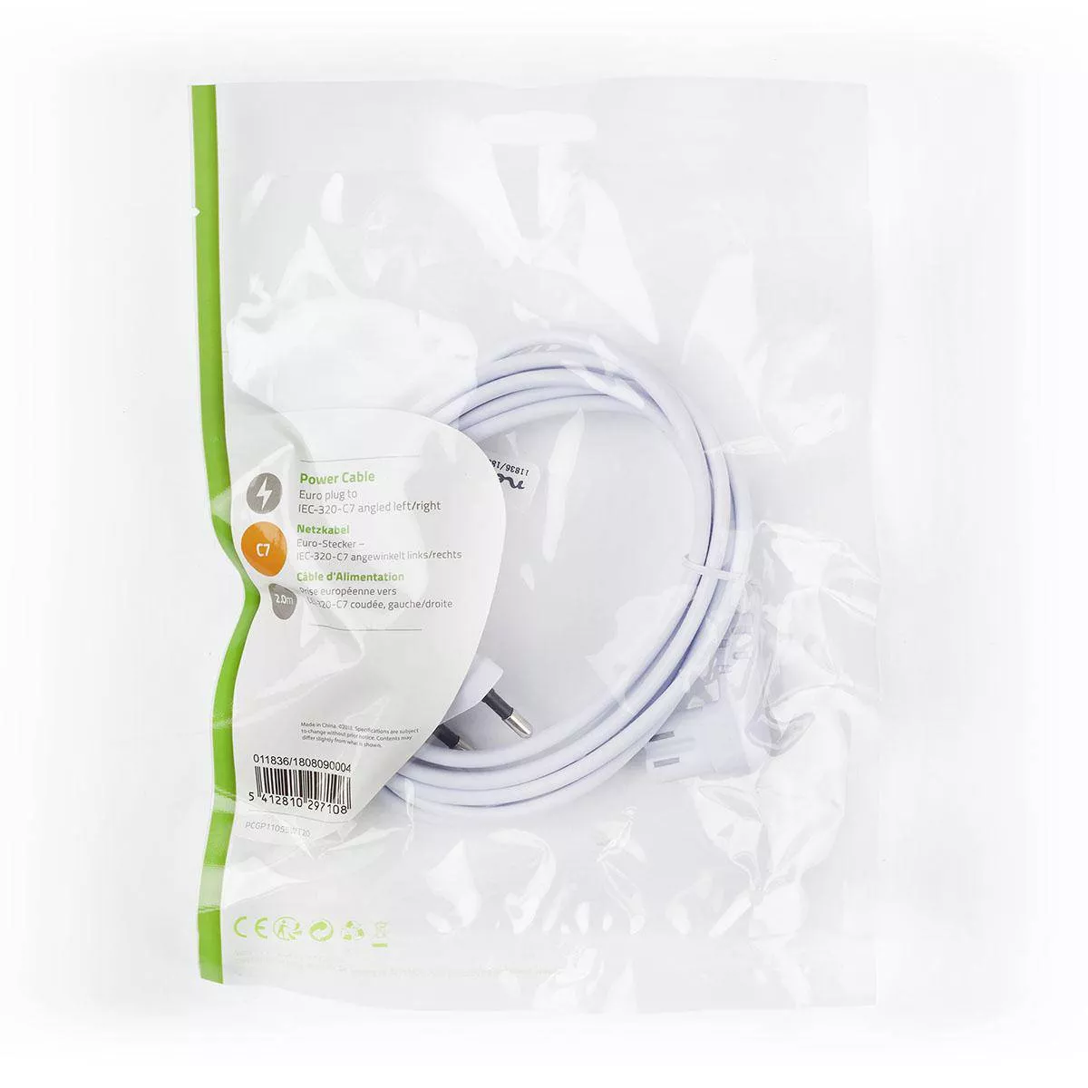 Cablu alimentare Euro tata cotit – 2 Pini IEC-320-C7 cotit 2m alb Nedis.