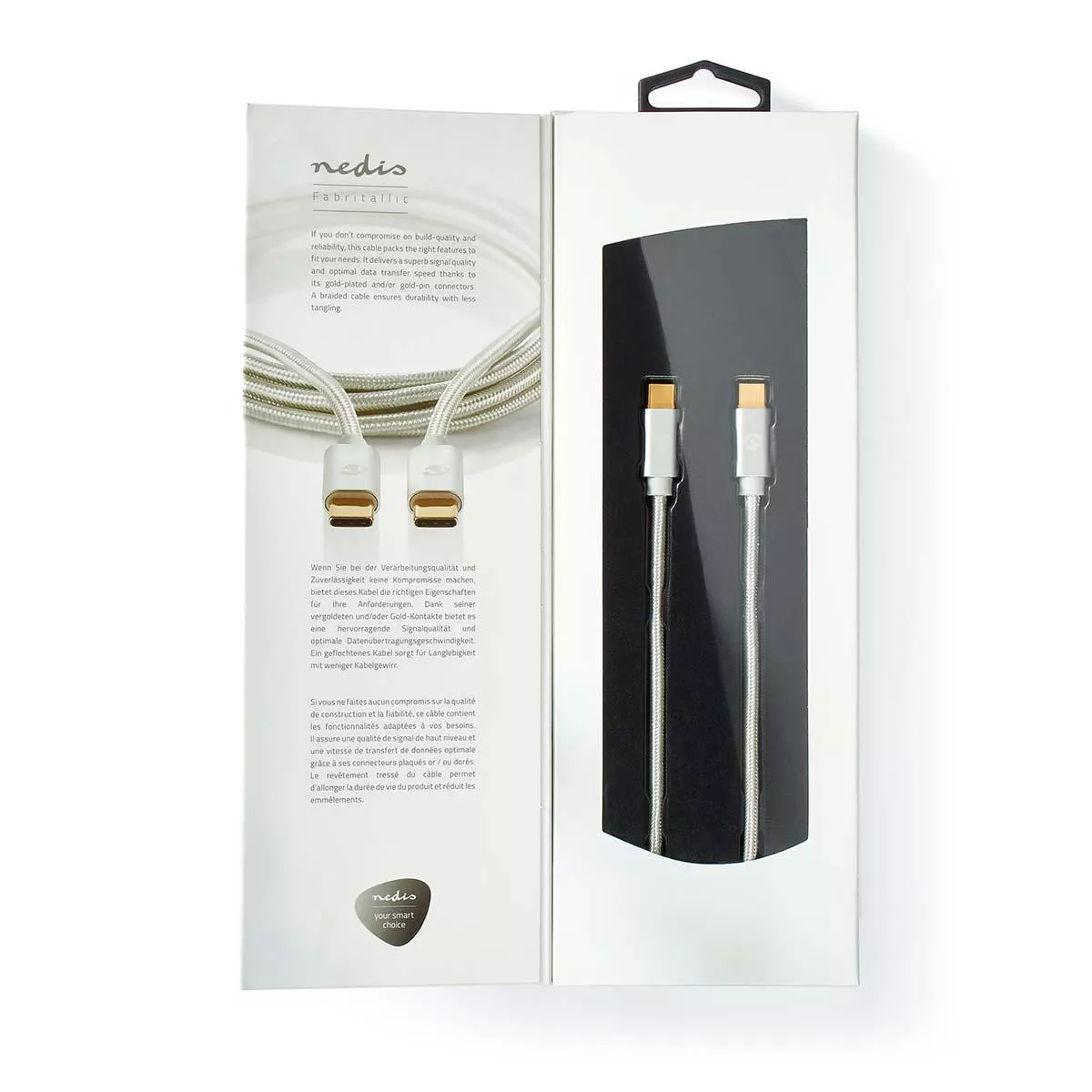 Cablu de alimentare si sincronizare Nedis USB tip C 2.0 tata la USB tip C tata suporta AV 5A 100W placat cu aur 2m argintiu.