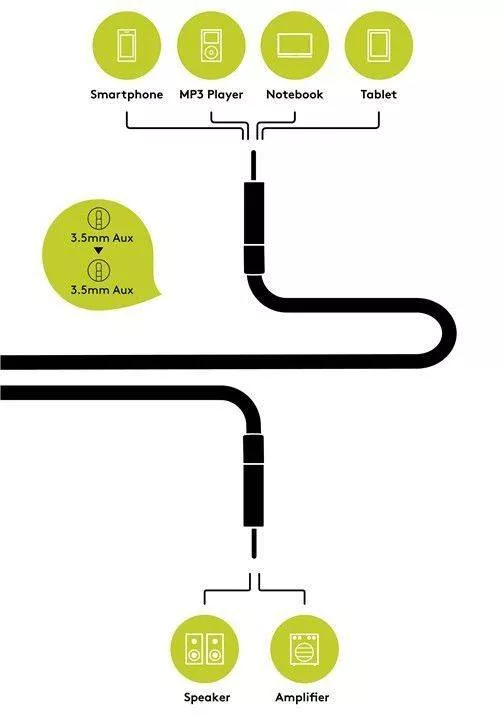 pentru conectarea smartphone-urilor, tabletelor sau playerilor MP3 cu difuzoare, radio auto sau sisteme de divertisment HiFi.