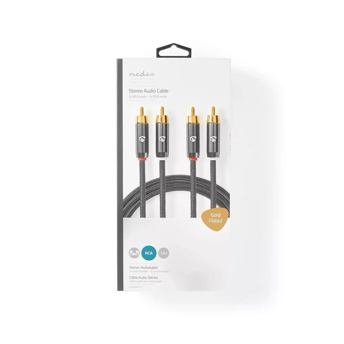Cablu audio stereo 2x RCA tata – 2x RCA tata, 1m, gri, Nedis.