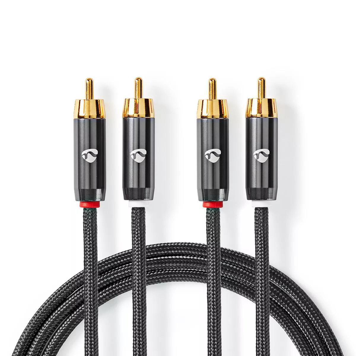 Cablu audio stereo 2x RCA tata | 2x RCA tata | Placat cu aur | 1,00 m | Rotund | Gri / Gunmetal.