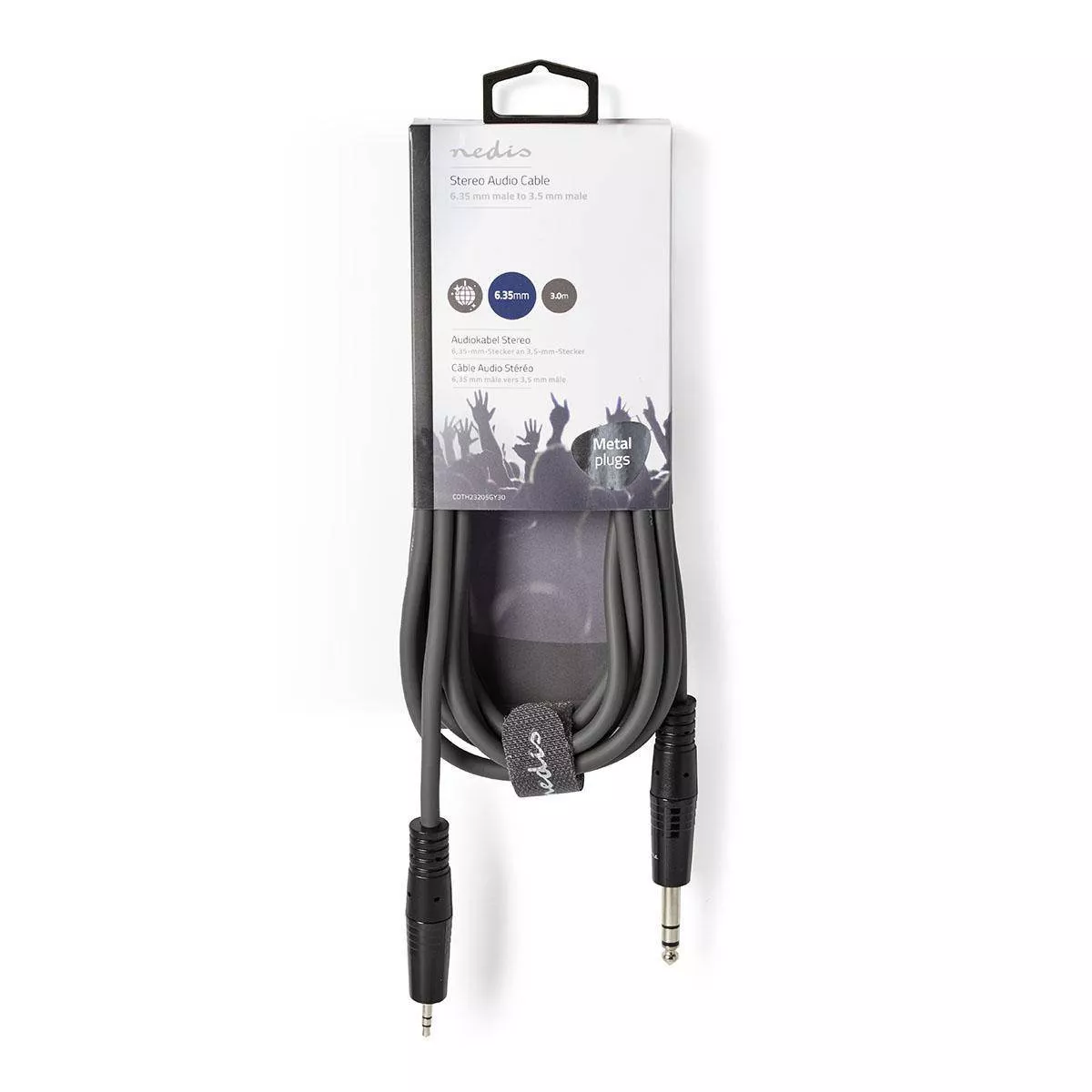 Cablu Audio Stereo Jack 6.35 mm tata – 3.5 mm tata 3m gri Nedis.