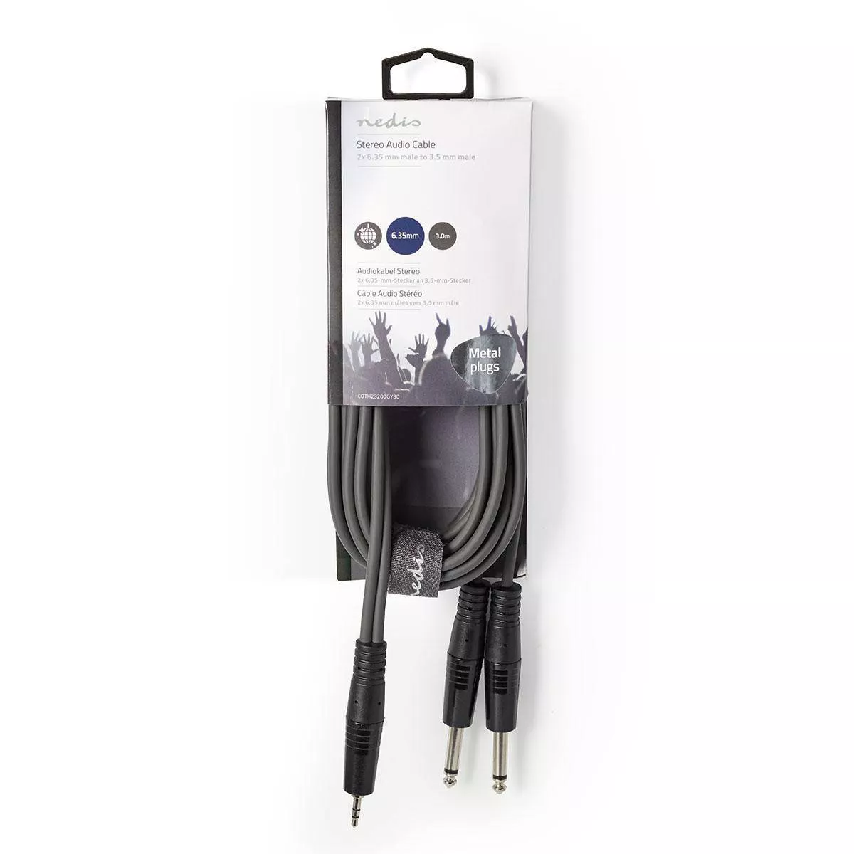 Cablu audio Stereo Jack mono 2x 6.35 mm tata – stereo 3.5 mm tata 3m gri Nedis