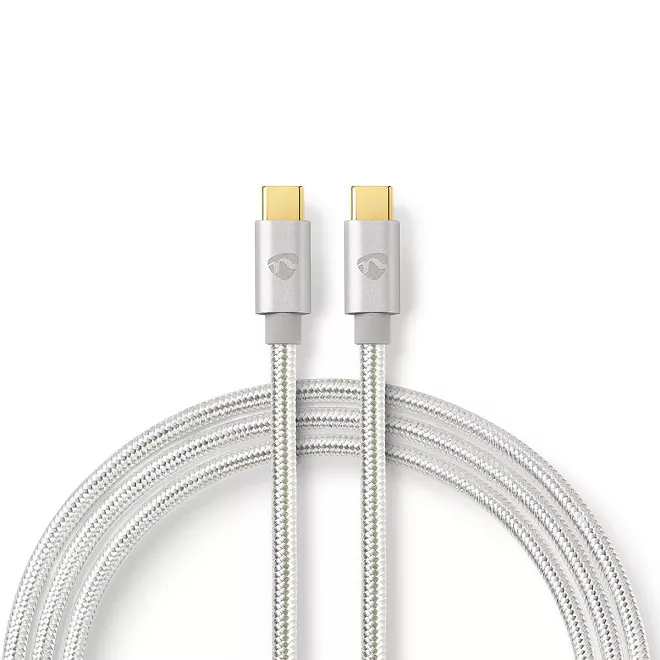 Cablu de alimentare si sincronizare USB type C 2.0 tata-tata 5A 100W aurit 2m cupru OFC argintiu Nedis.