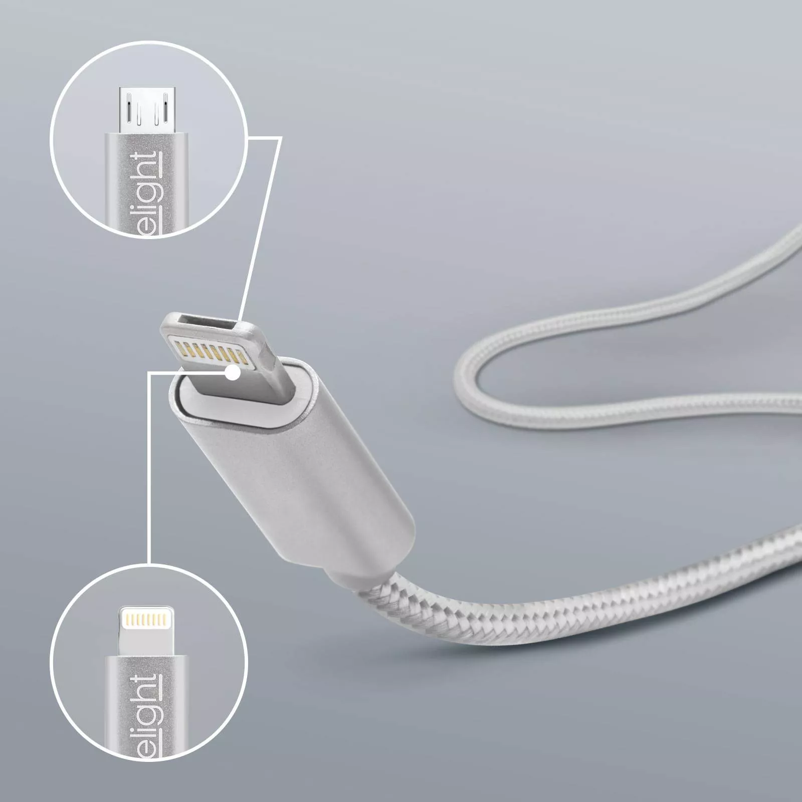 La un capat conexiune „lightning”, la celalalt capat Micro USB – ofera posibilitatea incarcarii aparatelor prevazute cu diferite standarde de incarcare.