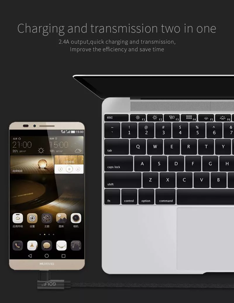 Cablu Golf Pudding Micro USB 48M 1m 2.4A negru
