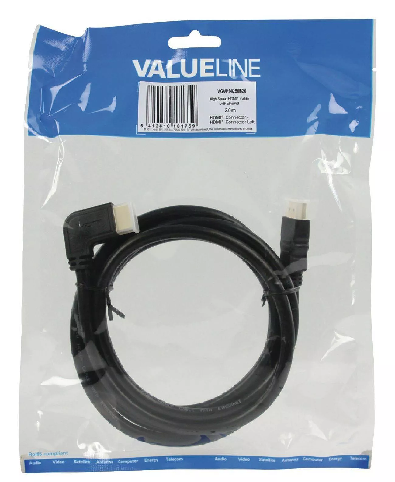 Cablu HDMI cu functie Ethernet 2 m conectori drept si cotit 90 grade Valueline.