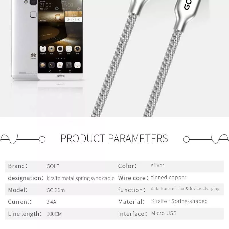Cablu KIRSITE Micro USB Golf 36M argintiu 1m 2.4A Fast Charging.