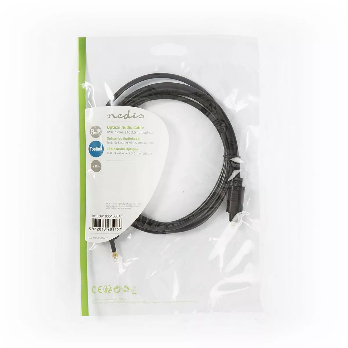 Cablu optic Nedis TosLink tata – mini optic 3.5mm tata, 2m, negru.