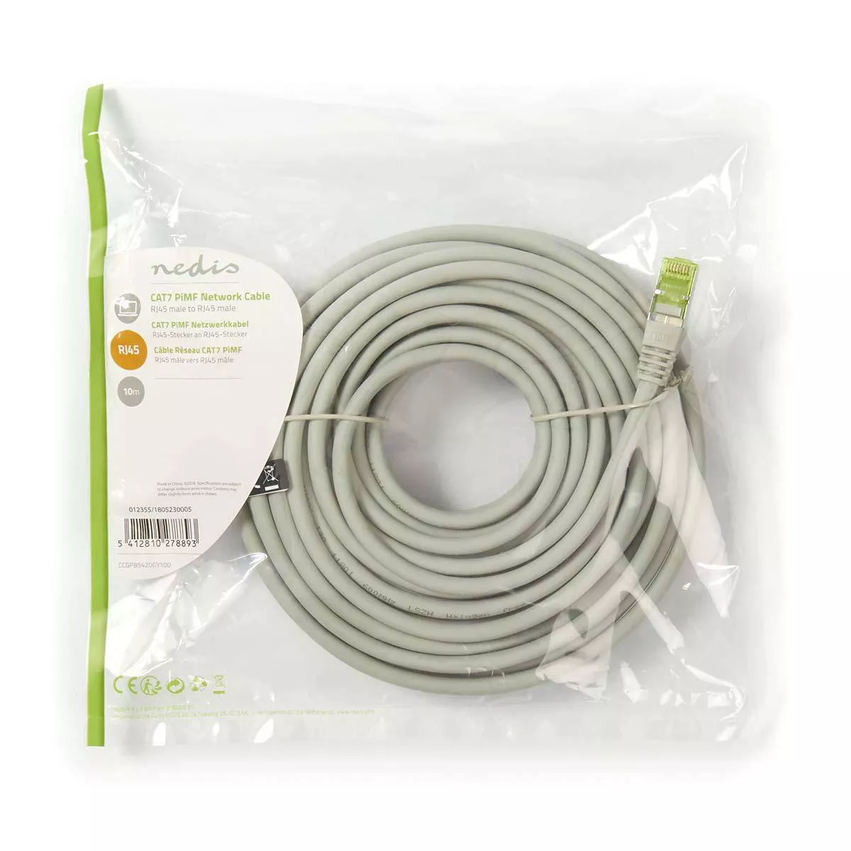 Cablu PiMF Cat7 RJ45 tata – RJ45 tata 10m gri Nedis.