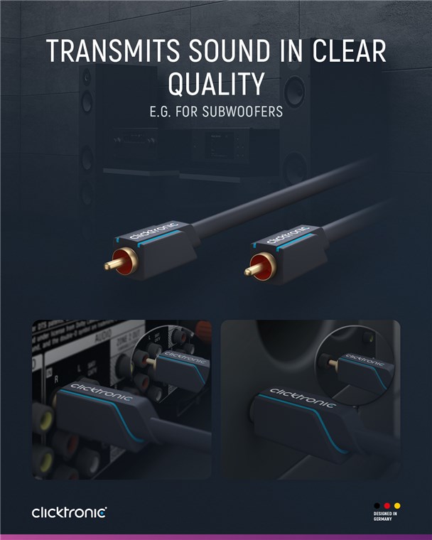 Cablu audio Clicktronic cu ecranare dublă din folie de aluminiu și împletitură de cupru pentru o calitate strălucitoare a semnalului