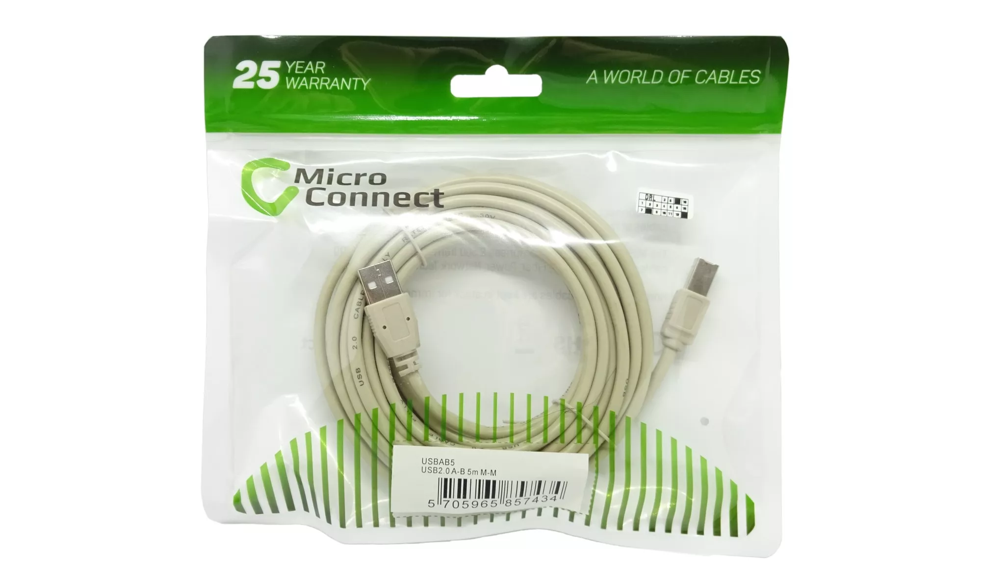 Cablu USB 2.0 A la USB B pentru impimanta 5m crem Micro Connect Gembird.