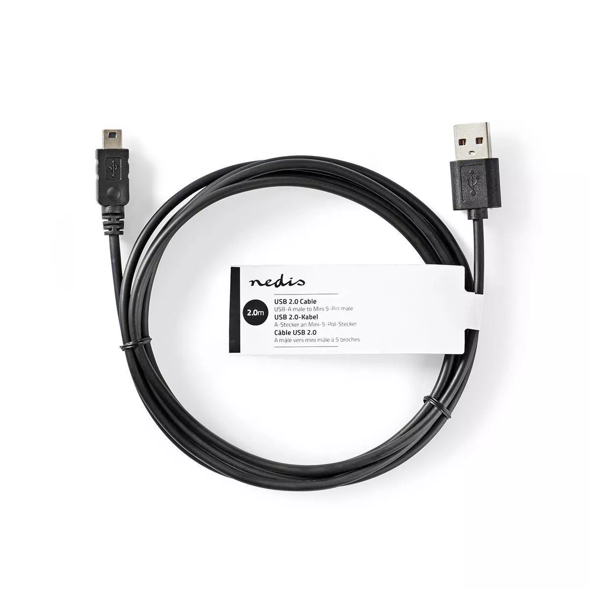 Cablu USB 2.0 A tata – Mini 5 Pini mini USB tata 2m negru Nedis.