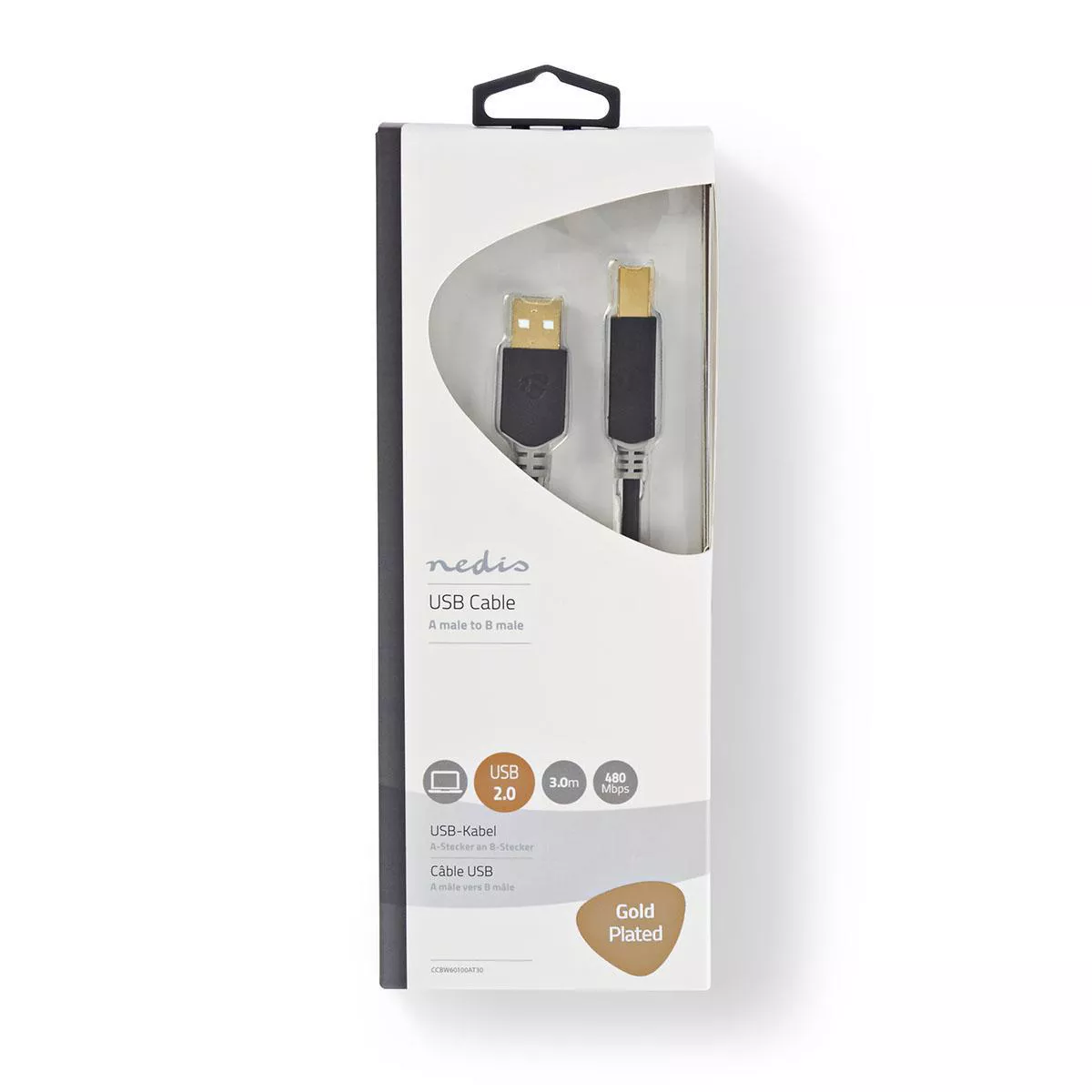 Cablu USB 2.0 A tata – USB-B tata imprimanta 3m antracit Nedis