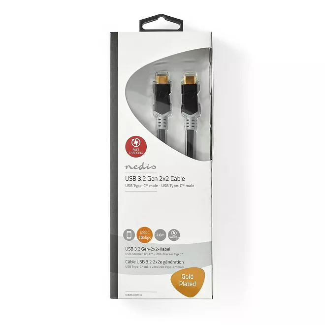 Cablu USB 3.2 Gen 2×2 type C tata-tata 2m 100W 5A 20Gbps cupru OFC antracit Nedis.
