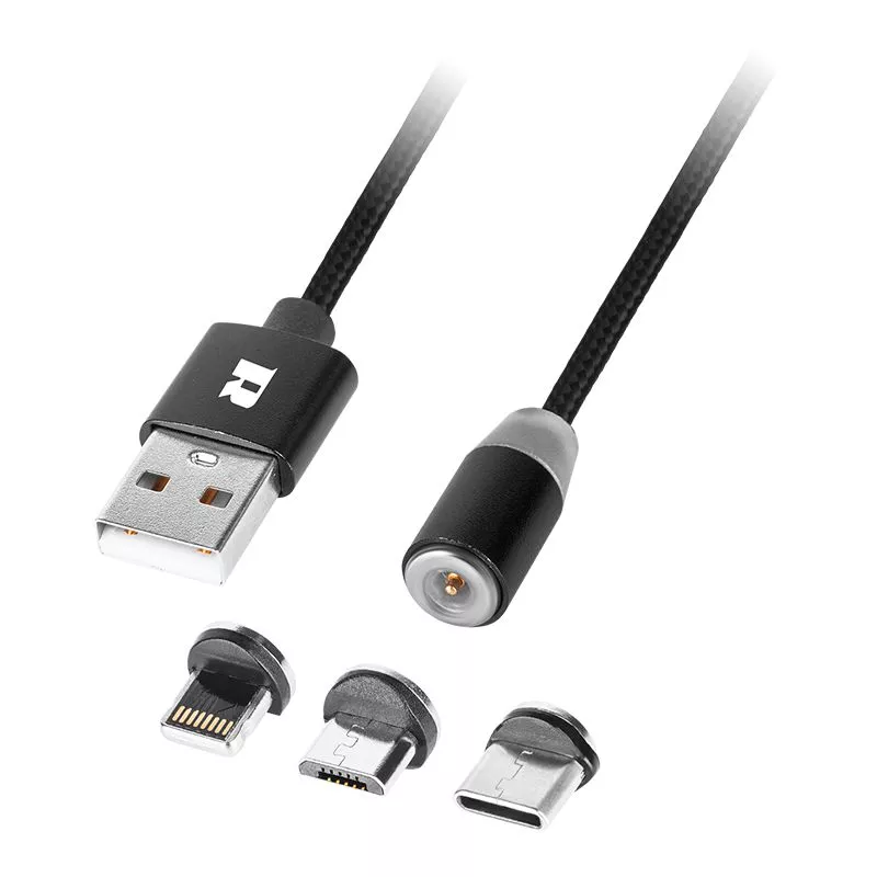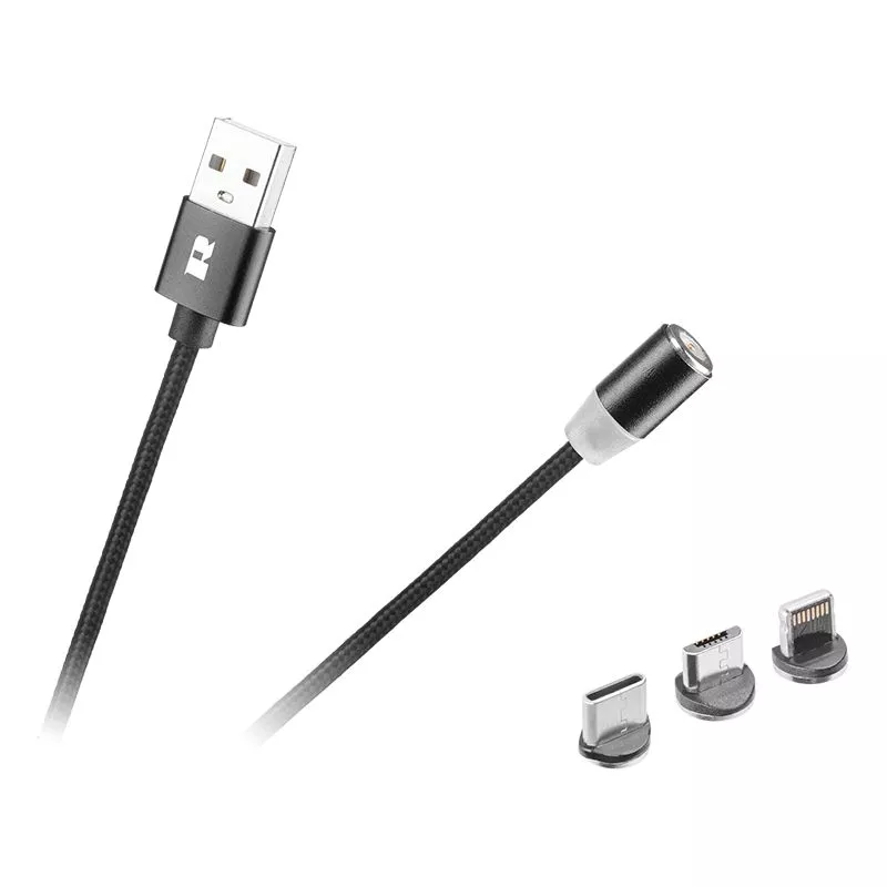 Cablu USB MAGNETIC 3in1 USB Type C LIGHTNING micro USB 1m negru REBEL.