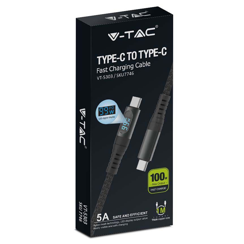 Cablu USB Type C – USB Type C 1m cu afisaj 5A V-Tac SKU-7746