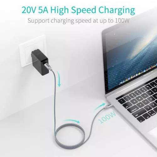 Suporta incarcare 20V 5A, acest cablu USB C la USB compatibil cu aproape toate dispozitivele USB c precum 2017 2018 Macbook Pro, 2016 2017 Macbook, Google pixel 3 pixeli 2 xl pixeli, Nintendo Switch, Nexus 6P, Lumia 950 si multe altele