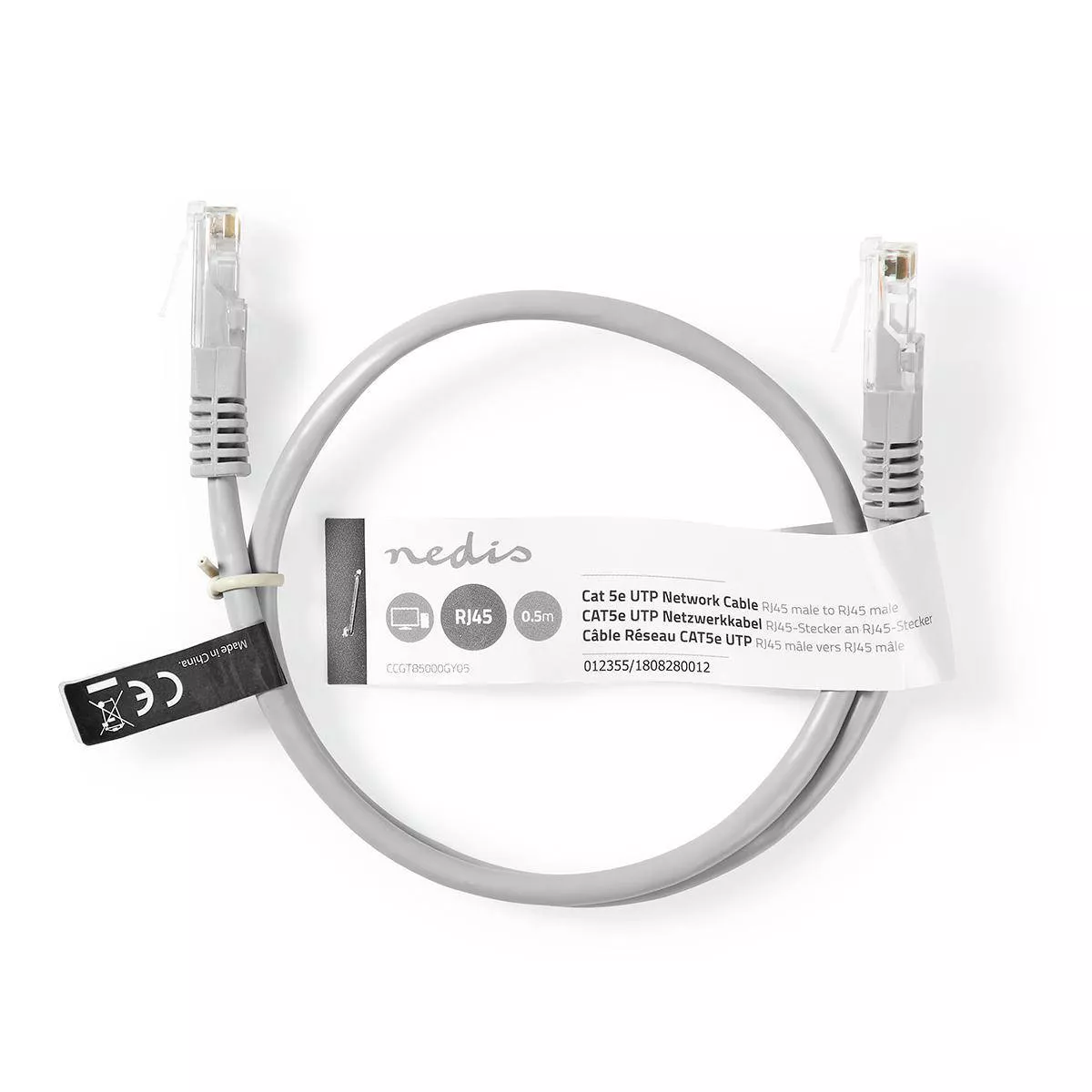 Cablu UTP Nedis Cat5e mufat 0.5m patch cord gri.