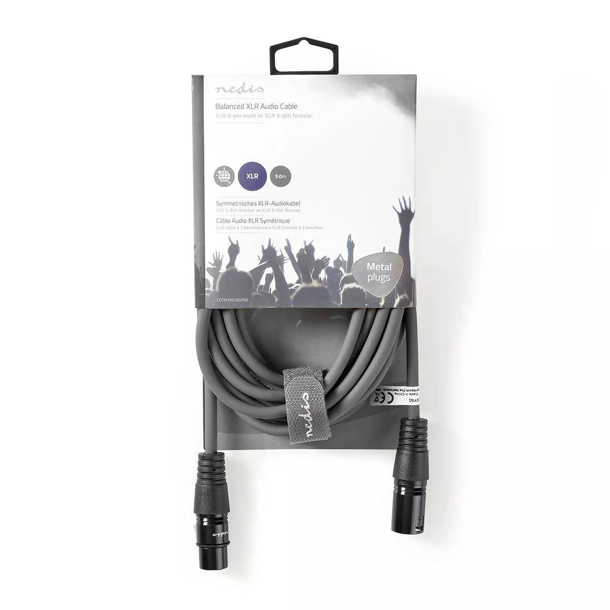 Cablu XLR stereo Nedis XLR 3 pini tata – XLR 3 pini mama 5m gri.
