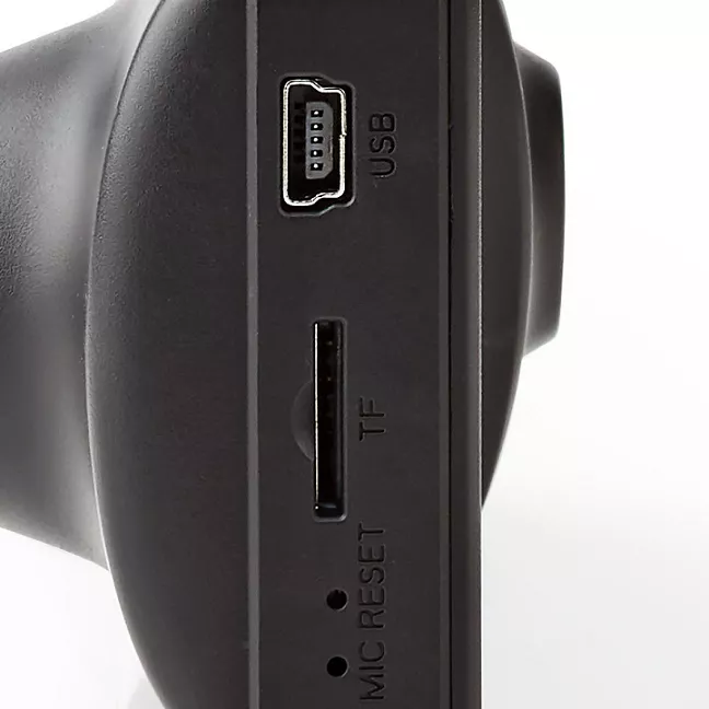 Camera funcționează cu un card de memorie microSD de până la 128 GB și are o funcție de buclă și un mod foto.