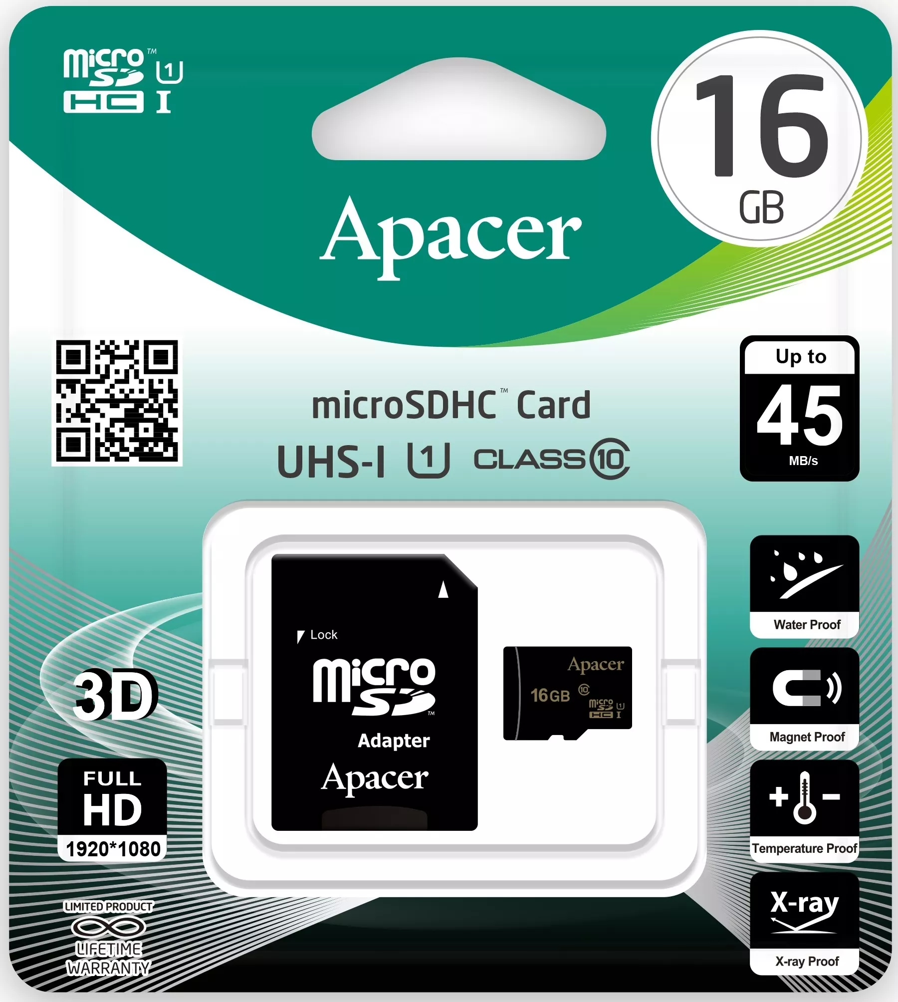 Card microSDHC UHS-I 16GB Clasa 10 cu adaptor SD Apacer