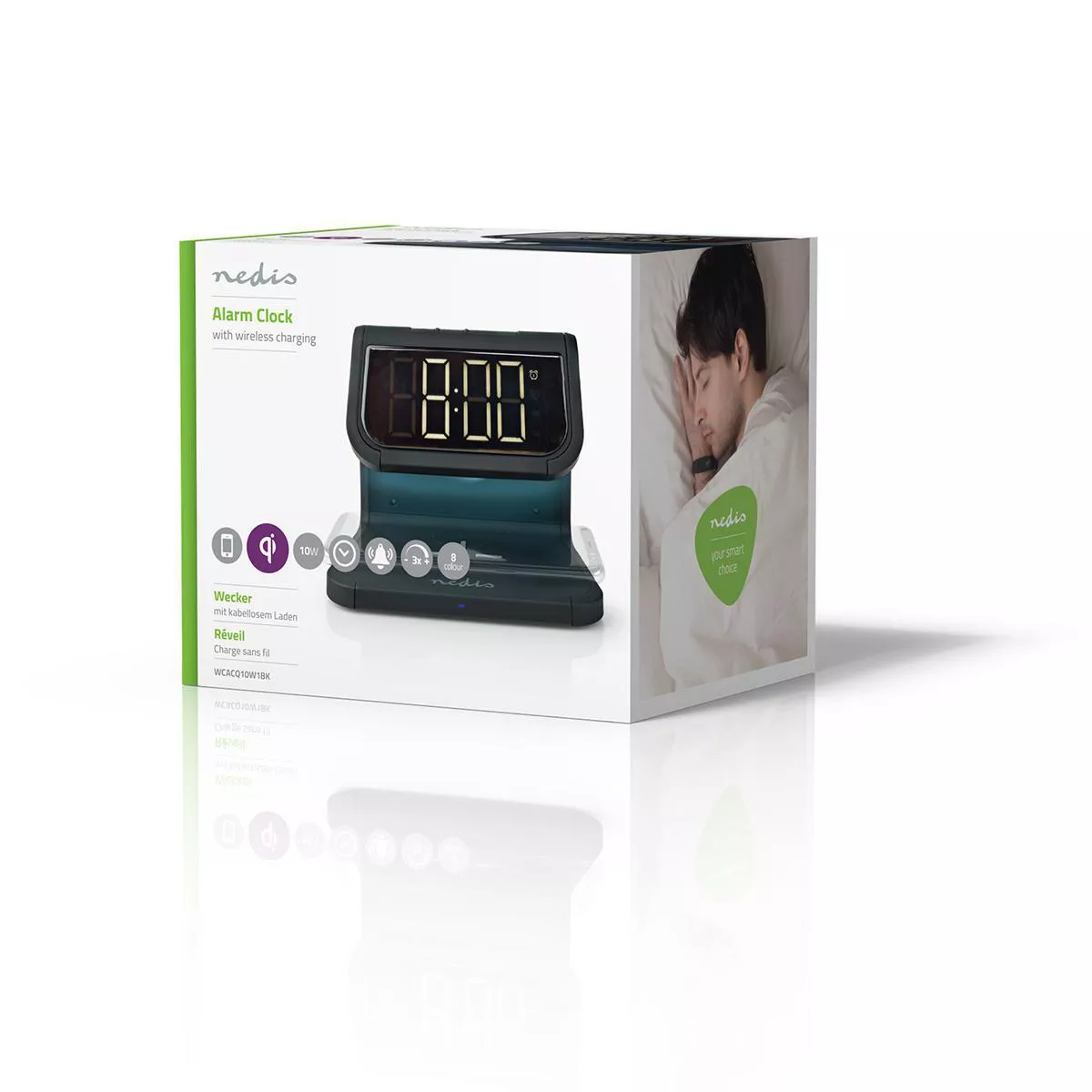 Acest ceas cu alarmă Nedis® 3-în-1 conține trei funcții: încărcare wireless Qi, un ceas cu LED-uri cu funcție de alarmă și lumină de noapte.