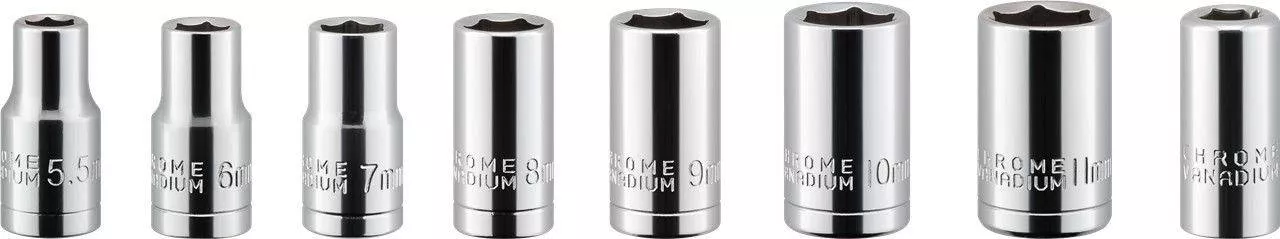 Suportul pentru biți include 7x 1/4 inch și piulițe hexagonale: 5,5 mm, 6 mm, 7 mm, 8 mm, 9 mm, 10 mm, 11 mm.