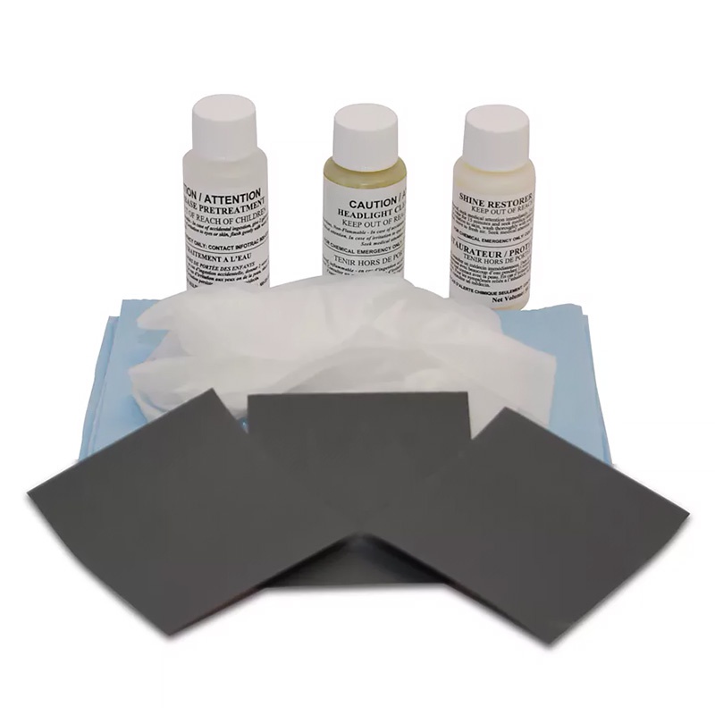 Acest kit vă va oferi tot ceea ce aveţi nevoie pentru a curăţa două faruri de maşină: – 1 sticlă cu Pretratament pe bază de apă (29,5 ml) – 1 sticlă de agent de curăţare/luciu (29,5 ml), 1 sticlă de agent de restaurare/păstrare a luciului (29,5 ml) – 1 bucată şmirghel 600 (mare) – 1 bucată şmirghel 1500 (medie) – 1 bucată şmirghel 2000 (fină) – 10 şerveţele – 1 pereche de mănuşi (mărime universală).