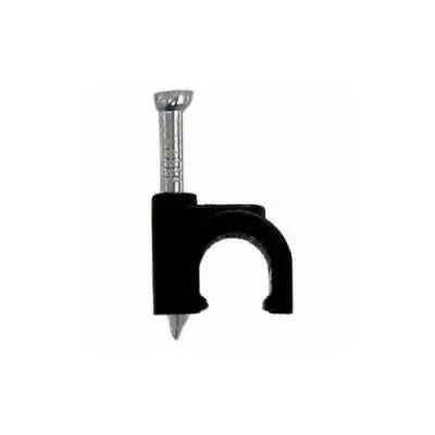 Cleme clips fixare cablu rotund plastic cu cui 6mm negru 100buc Well