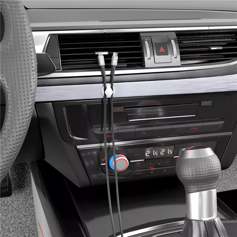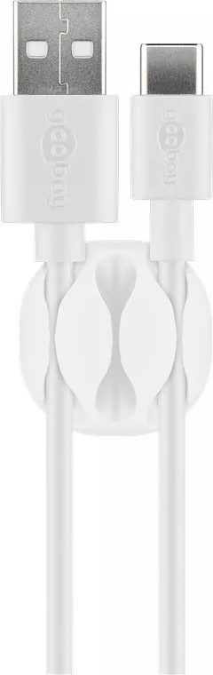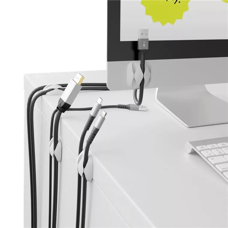Acest ghidaj flexibil pentru cabluri fixează cablurile din gama mânerului și evită alunecarea cablurilor de încărcare sau a altor conexiuni USB în spatele și sub birou.