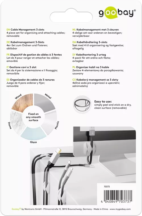 Cleme pentru gestionarea cablurilor cu 3 sloturi Goobay set 4buc alb