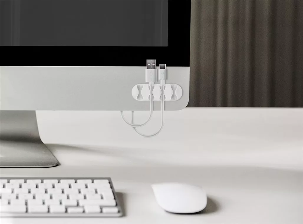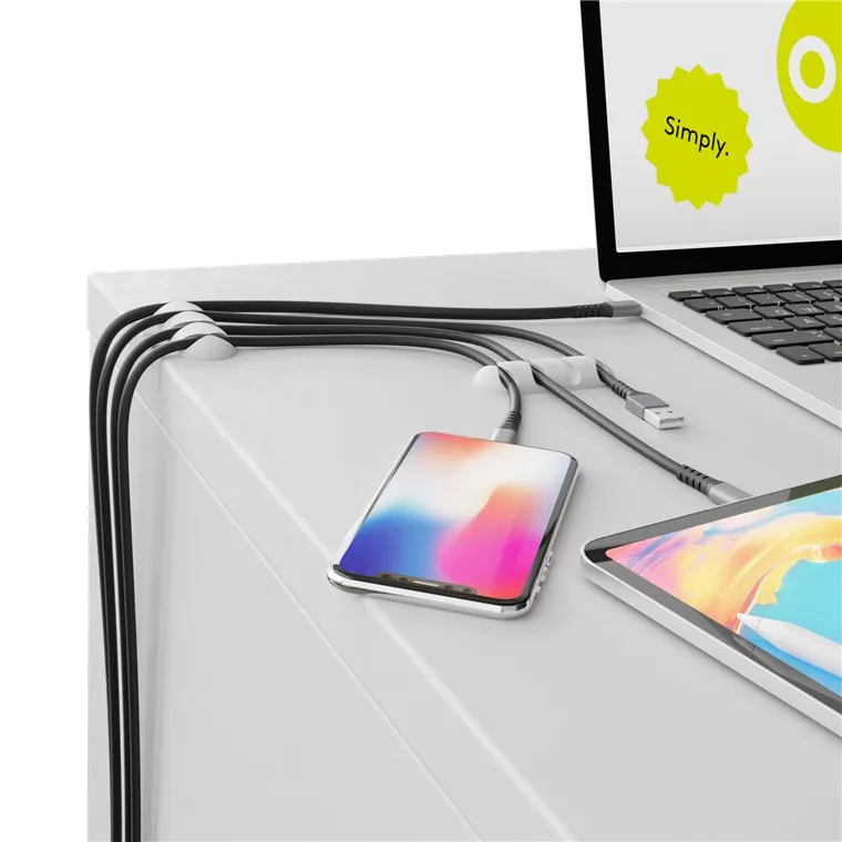 Acest ghidaj flexibil pentru cabluri fixează cablurile din gama mânerului și evită alunecarea cablurilor de încărcare sau a altor conexiuni USB în spatele și sub birou.