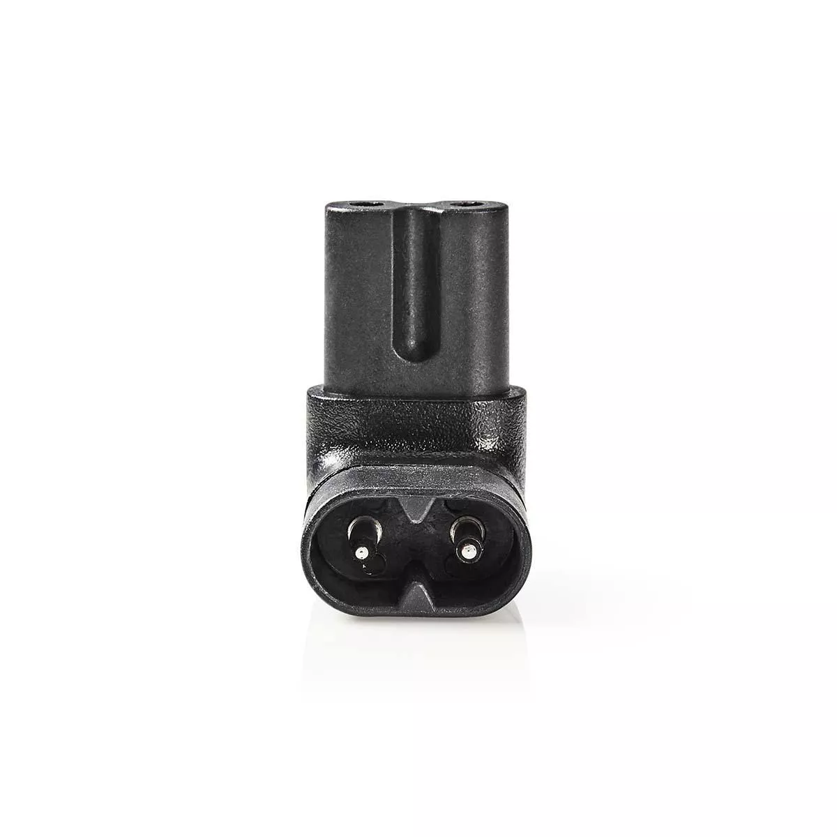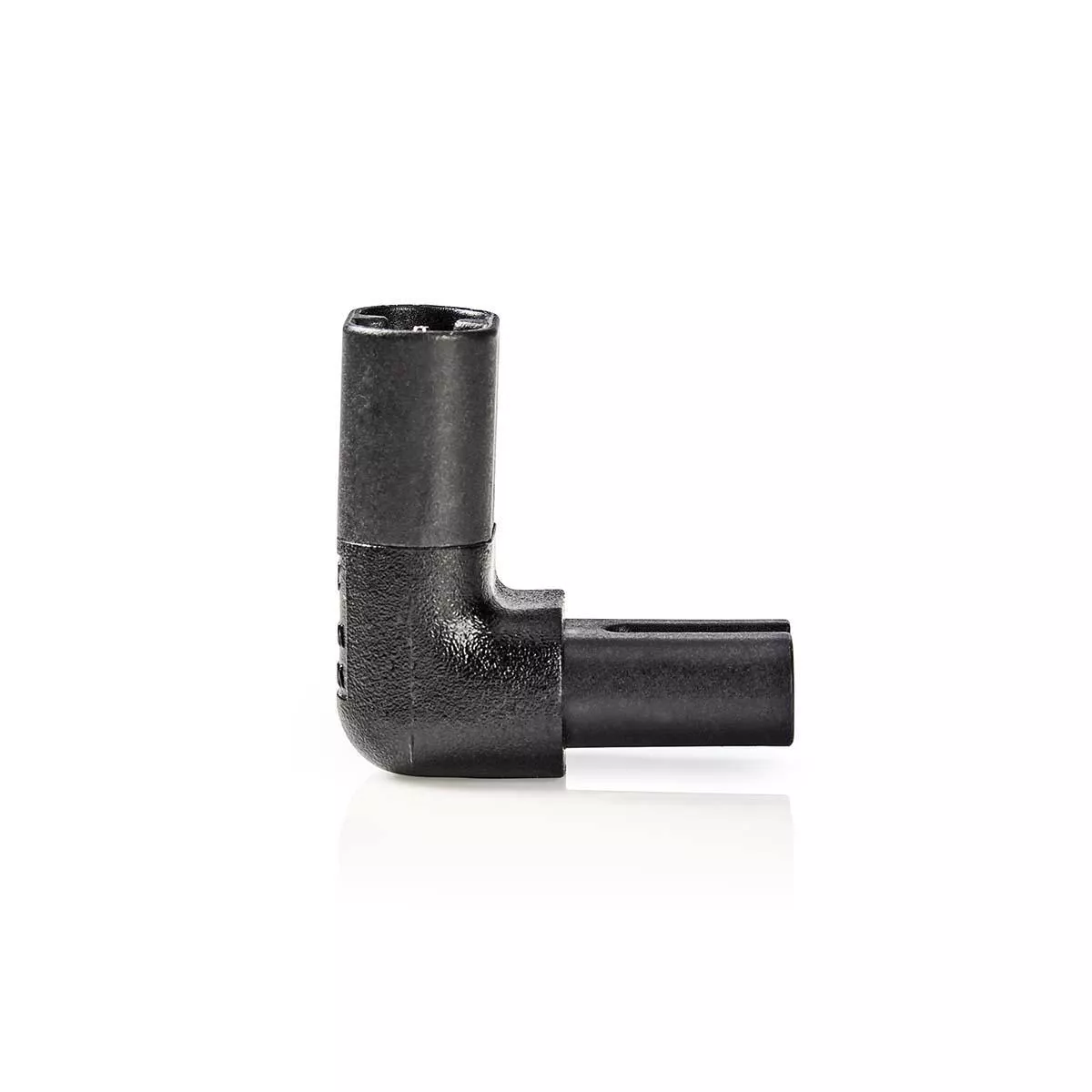 Conector adaptor de alimentare la 90 grade EURO | IEC-320-C7 mama – IEC320-C8 tata înclinat în sus / în jos | Negru.