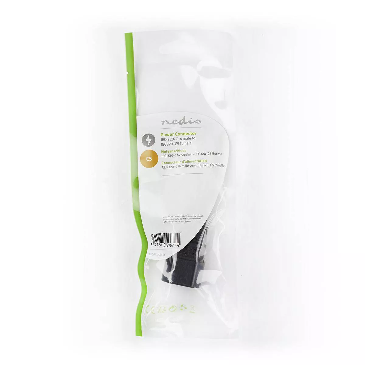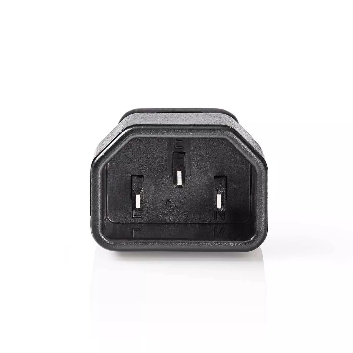 Adaptor de alimentare inclinat de la IEC-320-C14 la IEC-320-C5. Cu acest adaptor puteți conecta un cablu de alimentare IEC-320-C13 pe dispozitivele care au o conexiune IEC-320-C6.