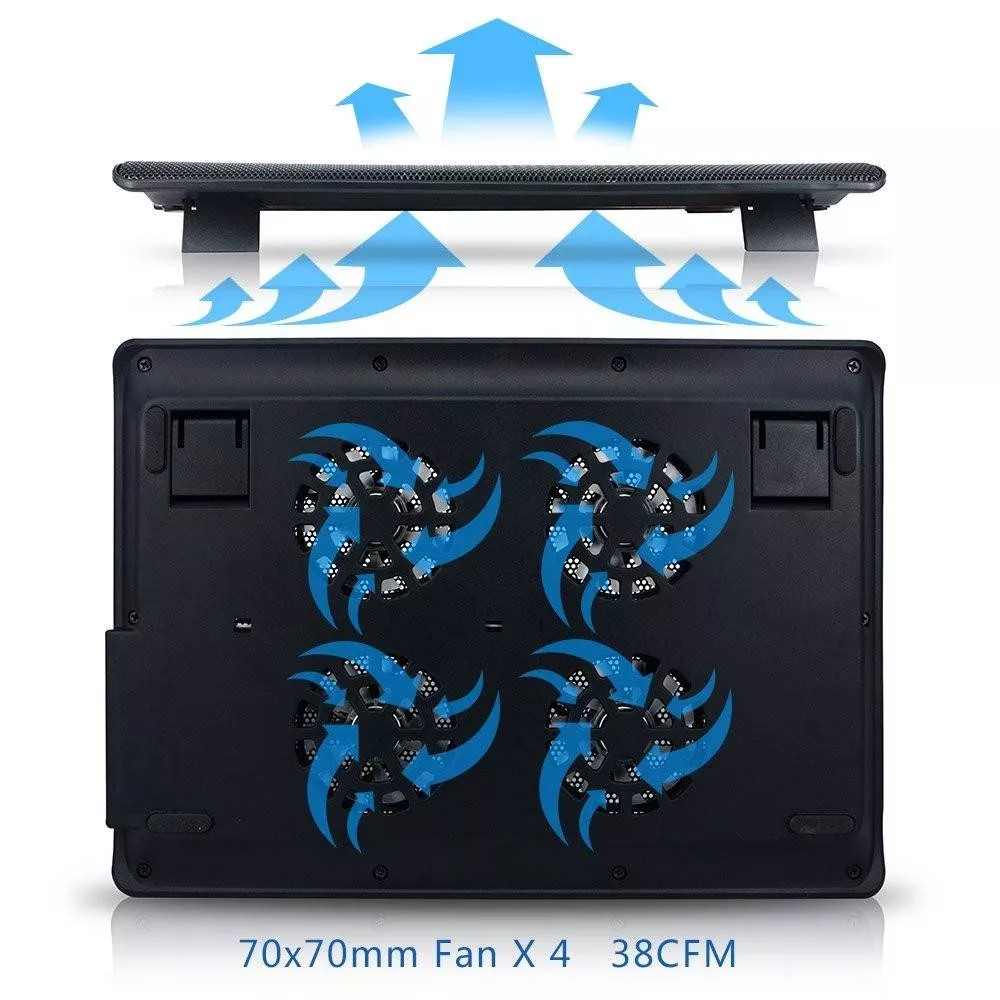 Placă de răcire pentru laptop cu ventilator puternic construit pentru disiparea ușoară a căldurii termice.