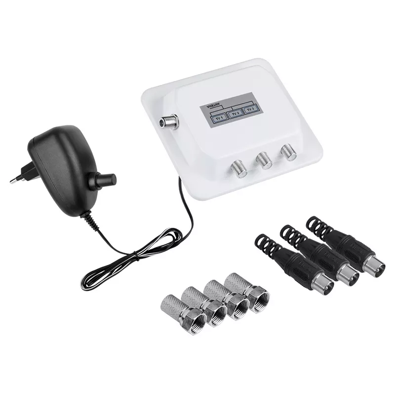 Splitter analogic și DVB-T reglabil fără pierderi, permițând conectarea a 3 televizoare la o antenă.