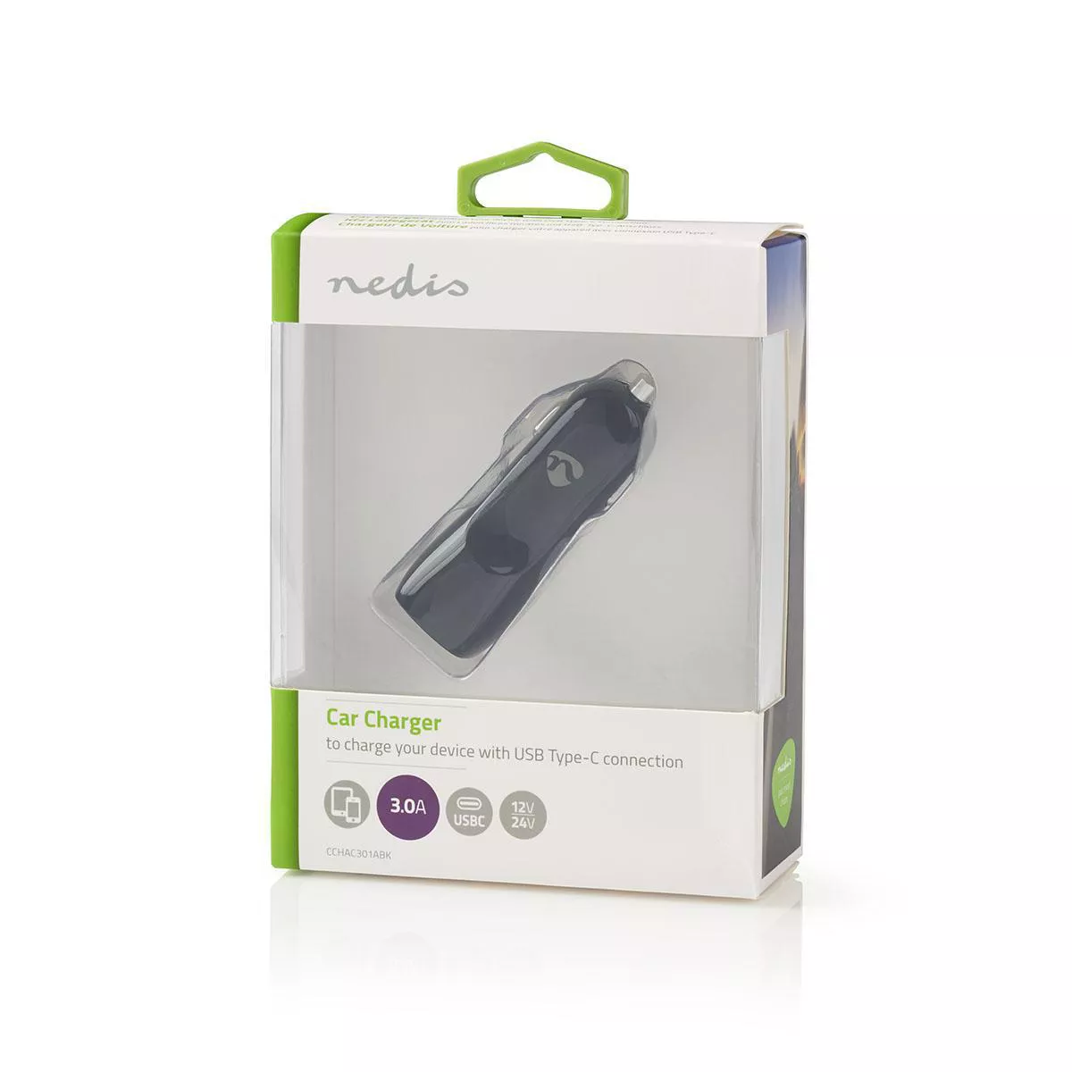 Incarcator auto 1x USB Type C 3.0 A negru Nedis.